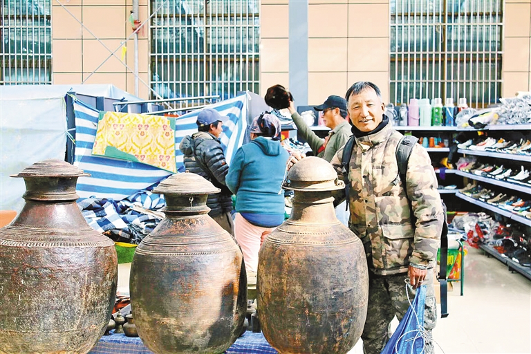 尼泊爾商戶(hù)加央在里孜口岸臨時(shí)交易市場(chǎng)。通訊員 西繞拉珍 記者 頓珠扎西 攝