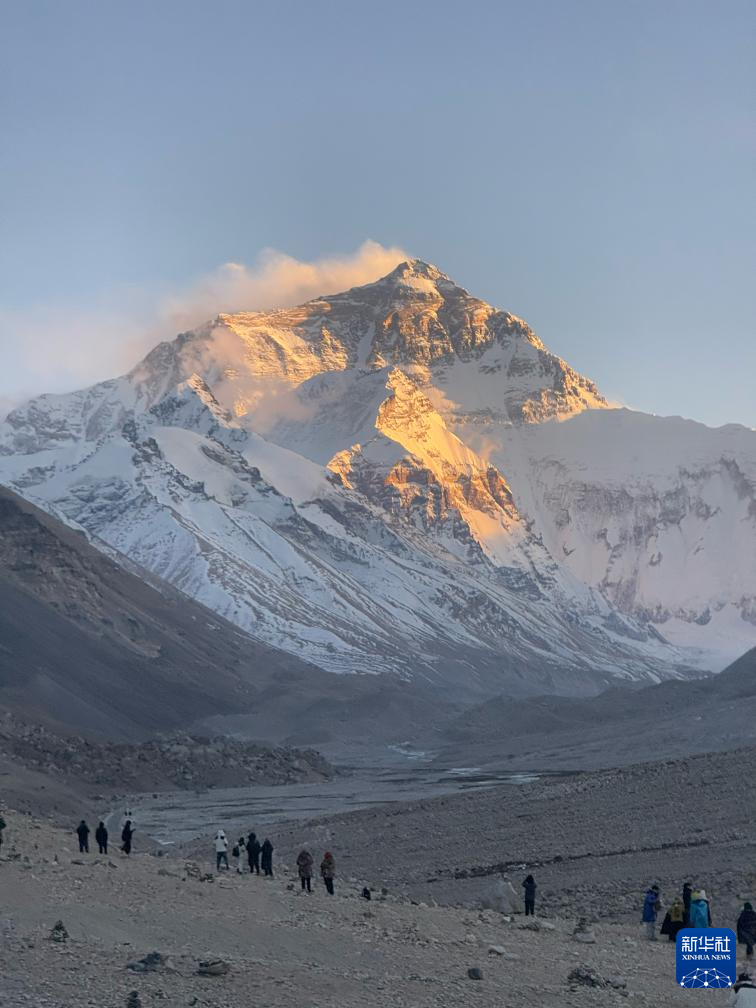 11月20日,游客在拍攝珠穆朗瑪峰日照金山景觀。新華社記者 邱星翔 攝