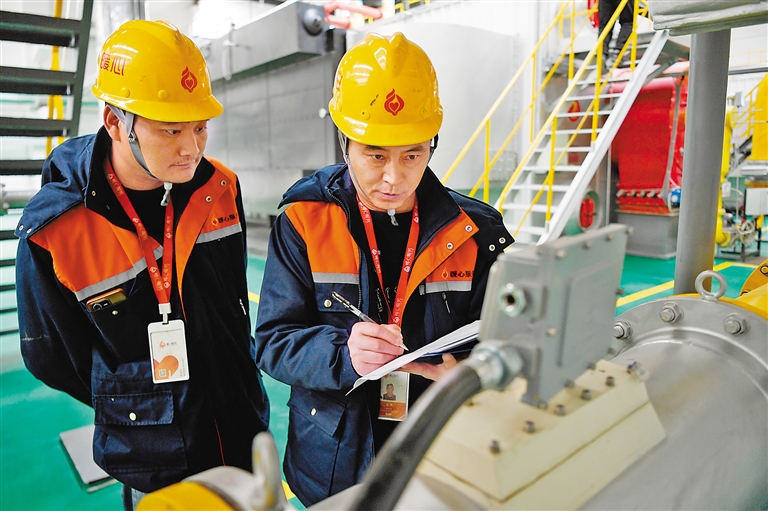 拉薩市暖心燃?xì)鉄崃τ邢挢?zé)任公司工作人員在鍋爐房內(nèi)檢查設(shè)備運行情況。記者 王敏 攝
