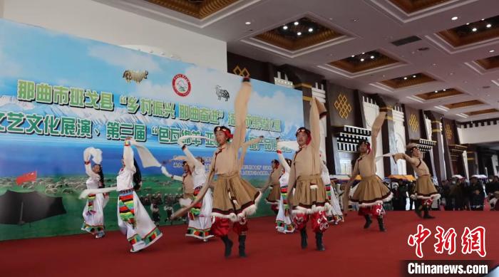 圖為班戈縣“鄉(xiāng)村振興 那曲奮進”活動成果轉化暨文藝文化展演、第三屆畜產(chǎn)品展銷會開幕式歌舞演出。洛桑斯卓 攝