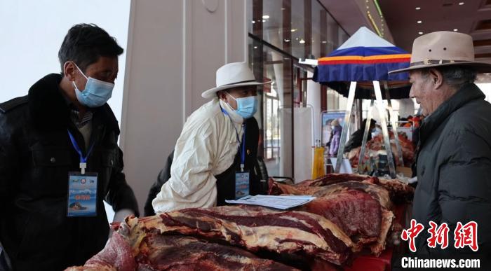 圖為市民在農(nóng)畜產(chǎn)品攤位前選購。洛桑斯卓 攝