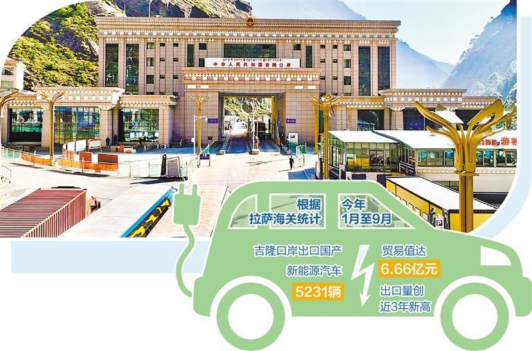 在位于日喀則市的吉隆口岸,裝載著一輛輛國產(chǎn)新能源汽車的大卡車正緩緩駛出國門,駛向尼泊爾。今年以來,新能源汽車出口形勢良好,貿(mào)易值屢創(chuàng)新高,成為西藏外貿(mào)新的增長點。根據(jù)拉薩海關(guān)統(tǒng)計,今年1月至9月,吉隆口岸出口國產(chǎn)新能源汽車5231輛,貿(mào)易值達6.66億元,出口量創(chuàng)近3年新高。