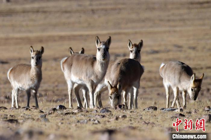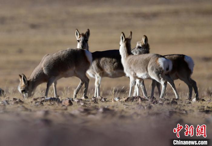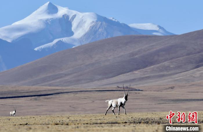 圖為12月5日,西藏那曲市申扎縣境內拍攝到的中國國家一級保護動物藏羚羊。中新社記者 李林 攝