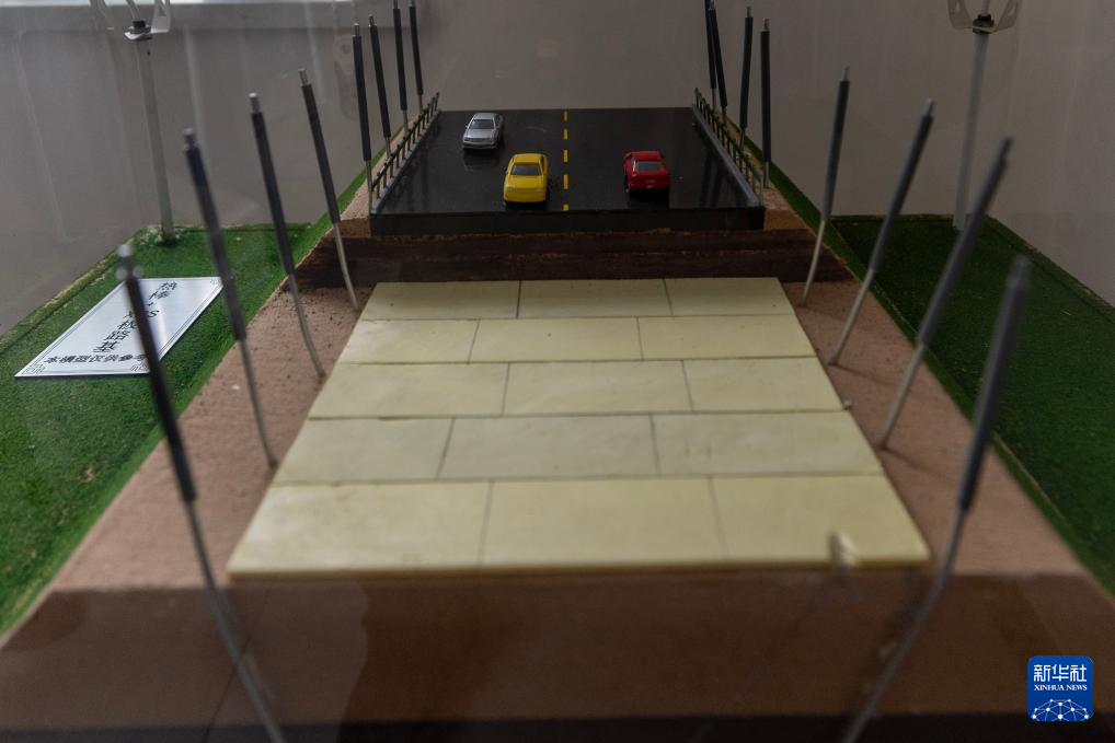 這是在中交第一公路勘察設(shè)計研究院有限公司格爾木觀測研究基地拍攝的“熱棒加XPS板路基”模型(12月3日攝)。新華社記者 姜帆 攝