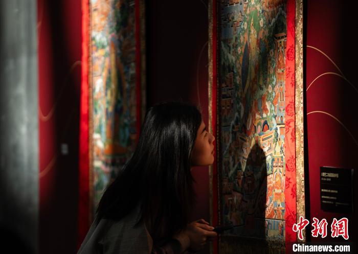 12月9日,“江河匯流 遍弘海內(nèi)”西藏日喀則薩迦唐卡藝術(shù)展在香港西九龍高鐵站紫荊藝術(shù)展演空間揭幕,展覽首次向香港市民游客展示明代《八思巴畫傳》中部分唐卡藝術(shù)品的藝術(shù)微噴摹品,展現(xiàn)日喀則的文化底蘊(yùn)。當(dāng)天,“珠峰之鄉(xiāng) 情耀香江”日喀則招商引資和文旅推介活動也同步舉行。圖為來賓參觀精美的唐卡摹品。中新網(wǎng)記者 侯宇 攝