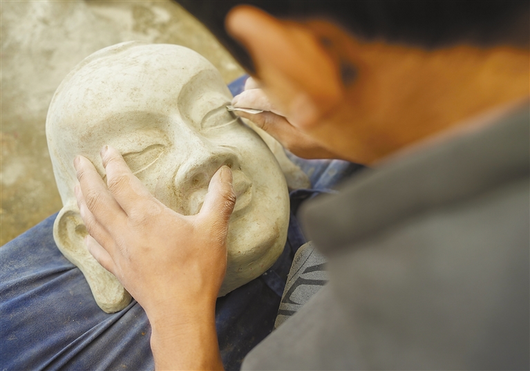 在拉薩市達孜區(qū)雪鄉(xiāng)民間傳統(tǒng)手工藝農(nóng)民專業(yè)合作社的小院里,拉薩布制面具制作技藝西藏自治區(qū)級非遺傳承人西洛和徒弟們忙得熱火朝天,他們正在制作面具。面具制作工序繁雜,制作一個面具包括雕刻、分層、風(fēng)干和噴漆等十幾道工序。2012年,在政府的扶持下,西洛創(chuàng)辦了傳統(tǒng)手工藝合作社,主要制作和銷售藏戲面具。西洛制作的面具造型精美,廣泛運用于藏戲表演中?!懊婢叩膬r格從幾百元到幾萬元不等,大部分訂單來自西藏的各大藏戲團?!蔽髀逭f。近年來,合作社不斷吸納當(dāng)?shù)厝罕妼W(xué)習(xí)面具制作技藝,不僅為當(dāng)?shù)厝罕娞峁┚蜆I(yè)機會,也進一步助力非物質(zhì)文化遺產(chǎn)的保護和發(fā)展。