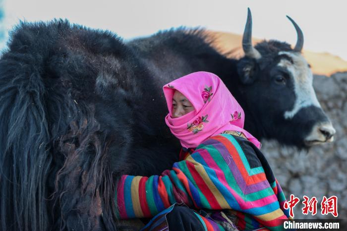 12月12日,西藏自治區(qū)那曲市安多縣帕那鎮(zhèn)牧民土巴卓瑪準(zhǔn)備去擠牦牛奶。中新社記者 貢嘎來松 攝