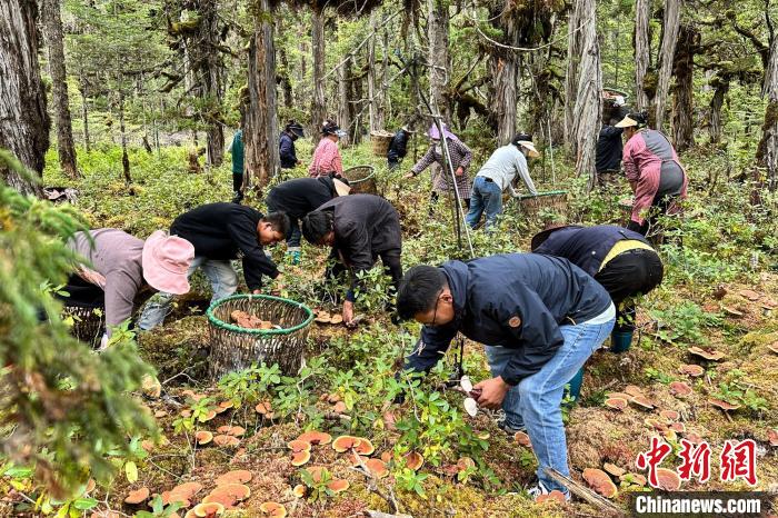 資料圖為尼瑪家庭農(nóng)場帶動(dòng)周邊農(nóng)牧民在林間仿野生種植的靈芝進(jìn)入采摘期。受訪者 供圖