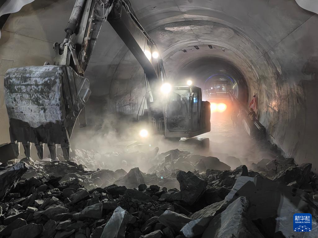 12月16日,中鐵二十局施工人員在然烏隧道內(nèi)施工。新華社發(fā)(劉強(qiáng)攝)