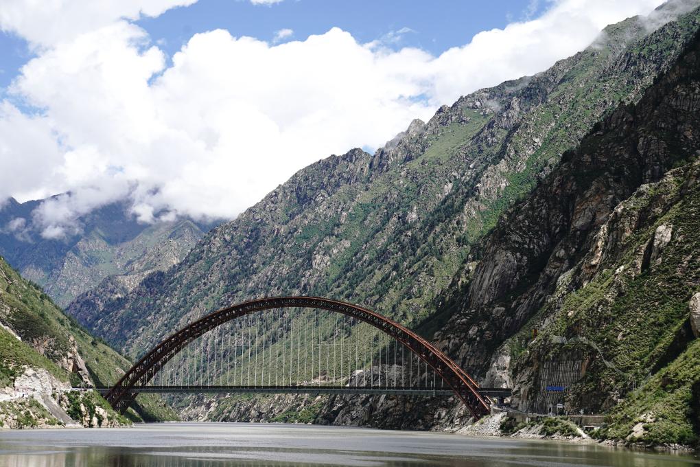 藏木雅魯藏布江雙線(xiàn)特大橋全長(zhǎng)525.1米,主拱跨徑430米(2021年7月11日攝)。 新華社記者 劉洪明 攝