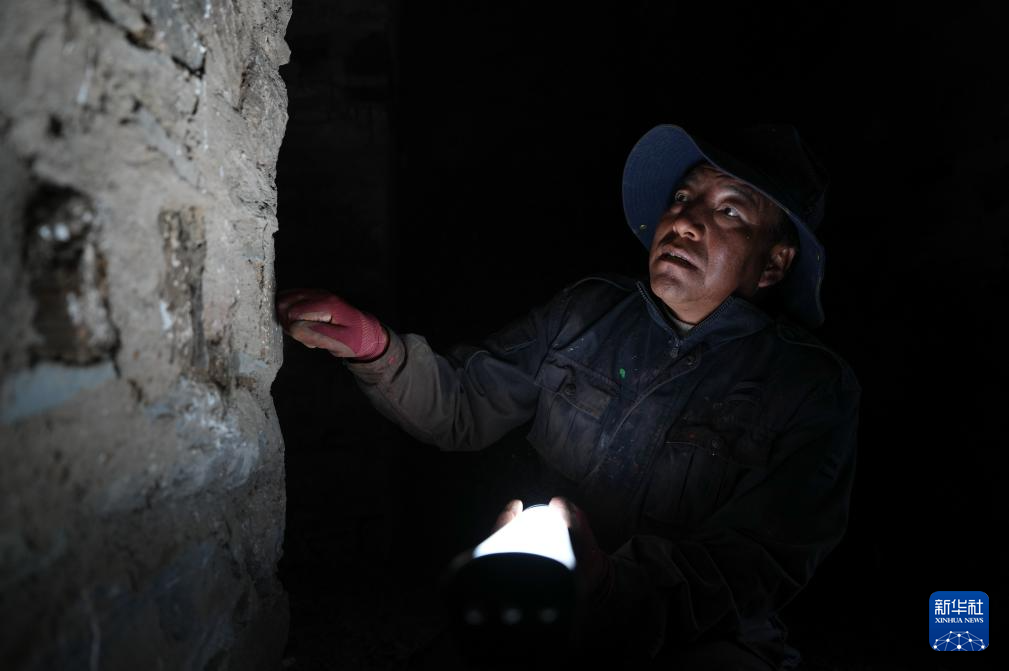 布達(dá)拉宮管理處維修科工作人員扎西在巡查布達(dá)拉宮地壟(12月4日攝)。新華社記者 晉美多吉 攝