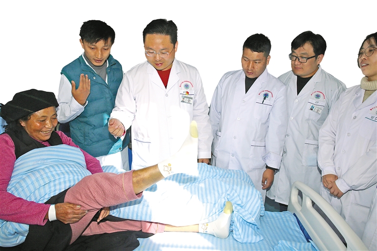 索朗平措激動地說:“以前膝蓋疼得厲害,上廁所要人扶,路都走不了。在縣醫(yī)院做完手術(shù)后,現(xiàn)在我恢復得很好,不僅能拄拐走路,還能幫家里干些活?!?/p>