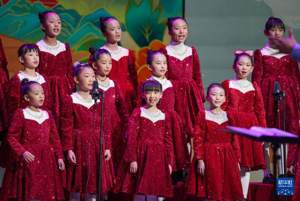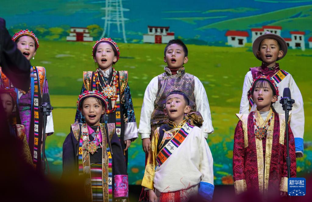12月28日拍攝的西藏首屆少兒新年音樂會暨西藏珠峰少年合唱團(tuán)2024年匯報演出現(xiàn)場。