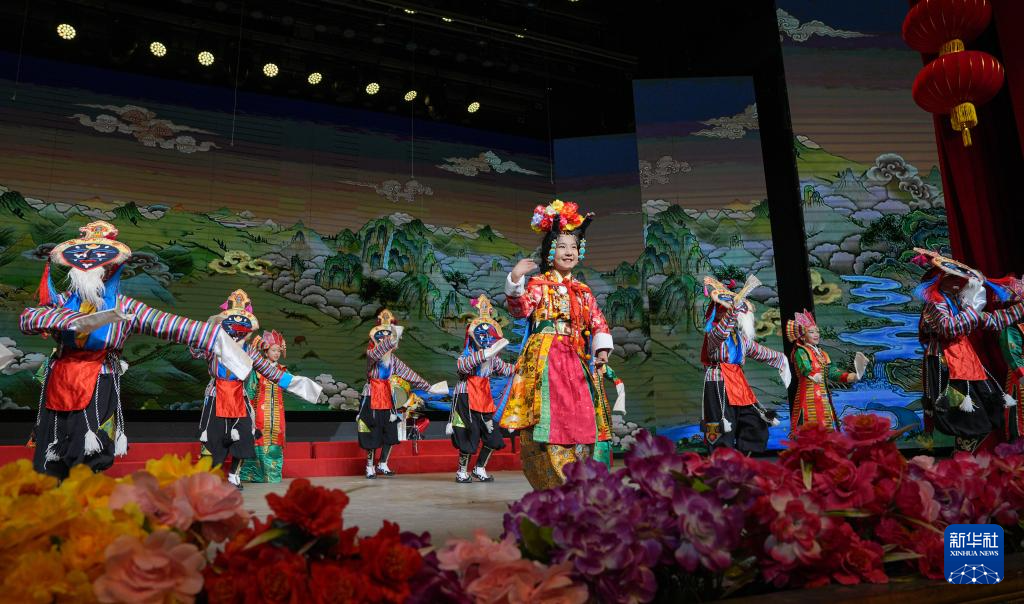 12月28日晚,西藏自治區(qū)群藝館藏戲常態(tài)班的少年表演傳統(tǒng)藏戲《蘇吉尼瑪》。