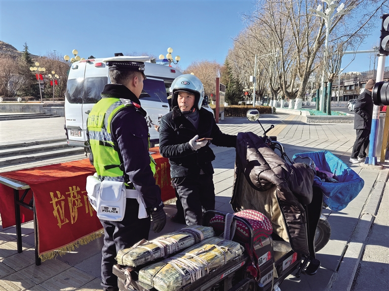檢查過程中,民警還在部分重要交通路口和人員密集區(qū)域設(shè)立交通安全宣傳點(diǎn)位,搭建展板,向過往的市民和電動(dòng)車駕駛者告知超標(biāo)電動(dòng)車禁止上路的原因,講解超標(biāo)電動(dòng)車退市處理相關(guān)流程,讓廣大市民群眾更直觀地了解騎乘超標(biāo)電動(dòng)車出現(xiàn)交通事故的嚴(yán)重后果,強(qiáng)調(diào)遵守交通法規(guī)和佩戴安全頭盔等行為的重要性。拉薩市民曲女士告訴記者:“聽了交警宣講的交通安全知識(shí),我覺得很有意義,以后我會(huì)自覺遵守交通規(guī)則,確保出行安全。”