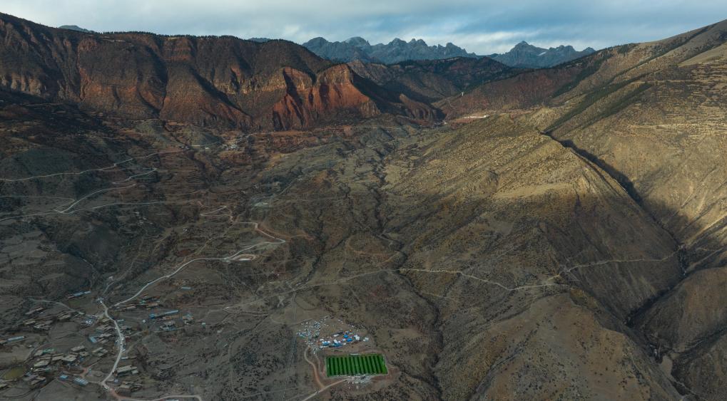 馬利鎮(zhèn)“云中球場”坐落于紅褐色的山谷中(1月2日攝,無人機(jī)照片)。新華社記者 丁增尼達(dá) 攝