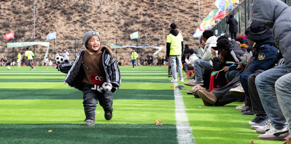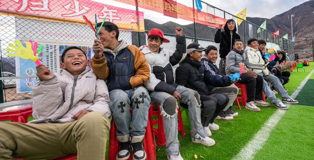 在馬利鎮(zhèn)“云中球場”,小球迷們在加油助威(1月2日攝)。新華社記者 丁增尼達(dá) 攝