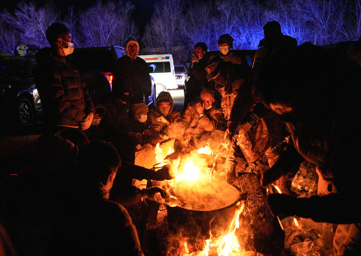 1月7日晚,安置點的受災(zāi)群眾在煮水準備泡方便面。新華社記者 晉美多吉 攝