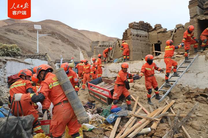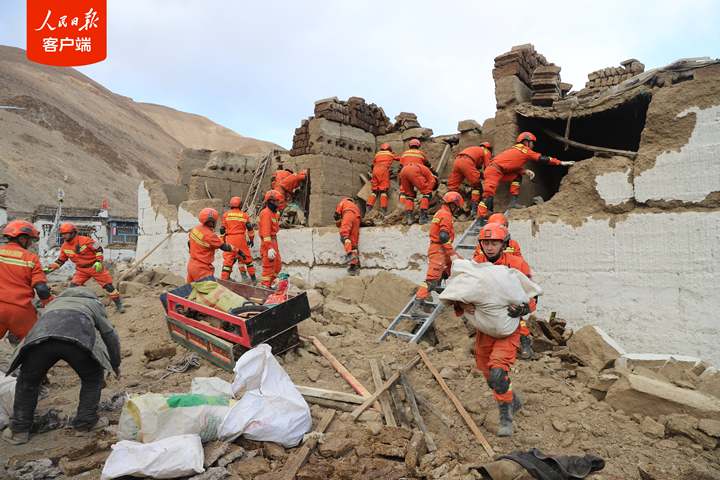 1月7日,西藏日喀則市定日縣發(fā)生6.8級(jí)地震后,西藏森林消防總隊(duì)指戰(zhàn)員第一時(shí)間趕赴受災(zāi)嚴(yán)重的措果鄉(xiāng)野江村展開(kāi)救援。救援人員把埋在廢墟里的牦牛和生活物資搶救出來(lái)后,村民雙手合十,真誠(chéng)感謝黨和國(guó)家,感謝救援人員。