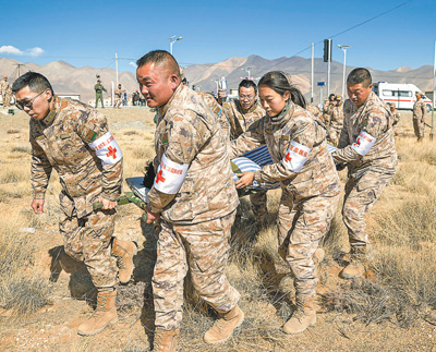 為保障災(zāi)區(qū)群眾生命健康,西部戰(zhàn)區(qū)前進(jìn)指揮所統(tǒng)籌醫(yī)療力量趕赴一線,開設(shè)23個(gè)醫(yī)療點(diǎn),逐村逐戶進(jìn)行巡診?!叭戎蚊恳幻麄麊T,不放棄任何一個(gè)受災(zāi)群眾,這是我們的責(zé)任和使命?!贬t(yī)療隊(duì)軍醫(yī)邊瑞華說。