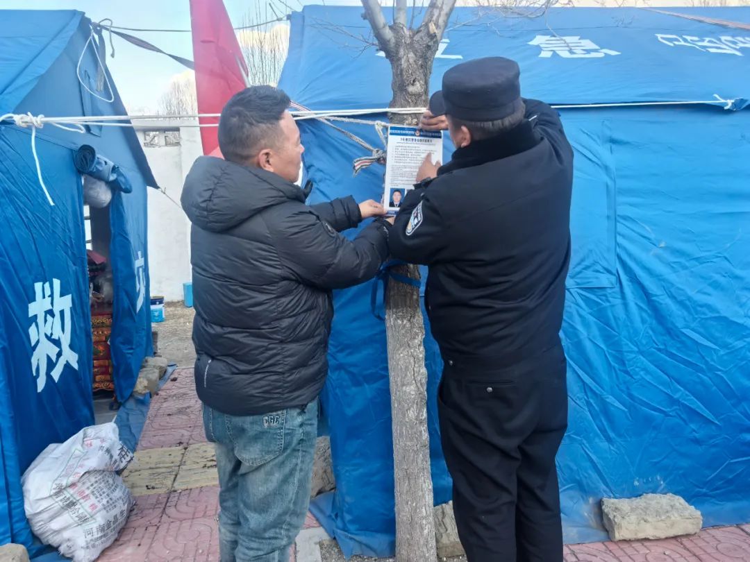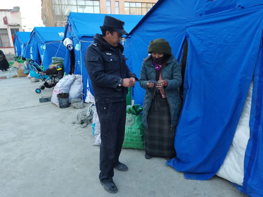 天還未亮,民輔警已投身救災一線,忙碌于清點救援物資。緊接著,他們步履不停,深入每一村每一戶,細致收集家庭基本信息,評估受災程度及房屋損毀情況,并逐一核實帳篷內(nèi)供暖、供電等基本生活需求的落實情況。走訪之際,一張張警民聯(lián)系卡被張貼于顯眼位置,親手遞到群眾手中,旨在迅速響應群眾訴求,引導合理表達困難與期望。同時,他們對孤寡老人、殘疾人、精神病患者、流浪人員及重癥病患等特殊群體給予了特別關(guān)注,積極協(xié)調(diào)資源,切實解決其實際難題,構(gòu)建起一座堅實的警民溝通橋梁。為確保轄區(qū)安寧,民輔警們進一步加大了社會面巡邏力度,細致排查潛在矛盾糾紛,全力預防偷盜、詐騙、搶劫等違法犯罪行為,當?shù)弥罕娯斘锉焕颐媾R損毀,他們不顧危險,憑專業(yè)技能穿梭廢墟,爭分奪秒搶救財物,全力守護群眾財產(chǎn)安全。在這過程中,民輔警不辭辛勞,反復穿梭于村落之間,確保救助工作覆蓋到每一個角落,每一個人,無論多少次往返,只為確?!安宦┮粦?,不落一人”?!熬焱?,你們辛苦了!”“感謝你們的付出,為你們點贊加油!我們一起努力戰(zhàn)勝災情!”……群眾一句句暖心的話語,化作源源不斷的動力,讓民輔警們更加堅定了抗震救災必勝的信心 。