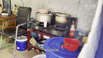 采訪中,記者走進(jìn)一間帳篷進(jìn)行探訪。在帳篷內(nèi)可以看到灶具、水桶、廚具、爐子,還有藏式沙發(fā)、桌子,甚至還有電視。據(jù)女主人介紹,地震發(fā)生后,老百姓領(lǐng)到了被子、泡面、饅頭、菜、肉、燃料等救災(zāi)物資。