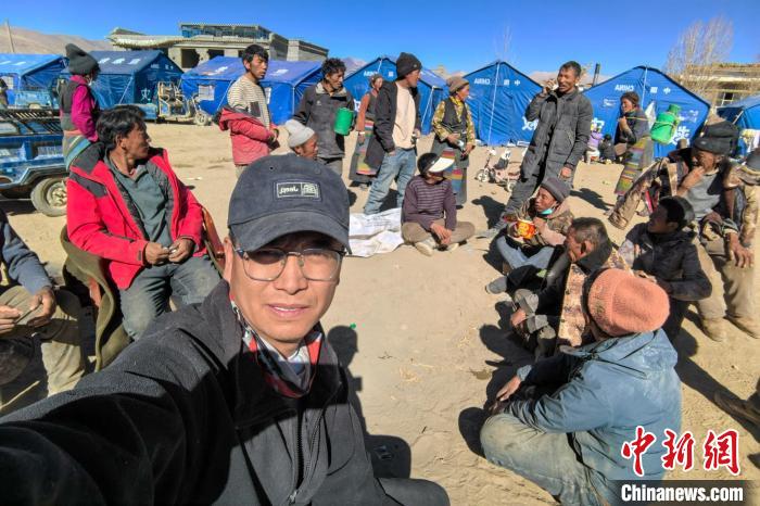 圖為1月11日,西藏定日6.8級(jí)地震后,鐵路職工桑杰尼瑪和村民們?cè)谝黄?。受訪者 供圖