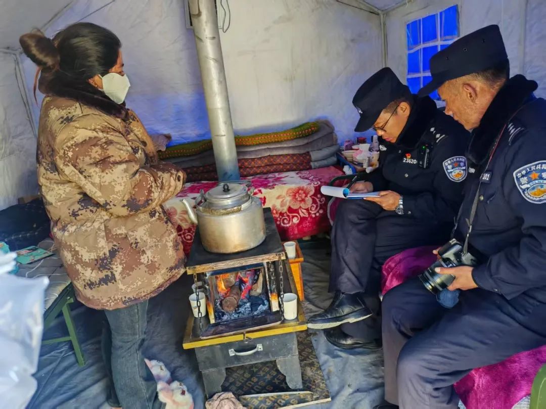 民輔警們穿梭于安置點(diǎn)的帳篷間,每到一處,都與群眾親切交談?!巴砩纤X冷不冷?”“吃飯還習(xí)慣嗎?”簡單的話語,飽含著無盡的關(guān)切。他們神情專注,認(rèn)真傾聽群眾的反饋,無論是基本的衣食住行問題,還是特殊的醫(yī)療需求,都詳細(xì)記錄在冊。對于行動不便的老人與殘疾人,民輔警們更是格外關(guān)注,耐心細(xì)致地詢問他們在生活中遇到的種種困難,力求在第一時間給予解。