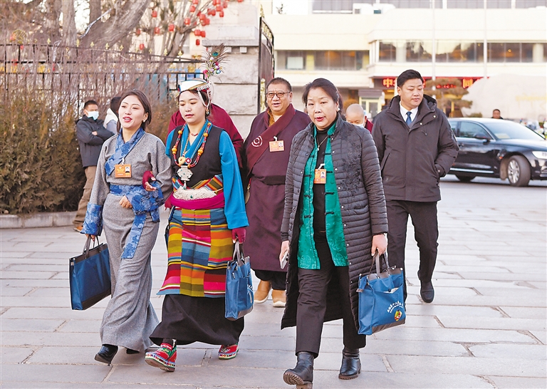 林芝市代表團(tuán)審議政府工作報(bào)告。記者 次仁平措 攝