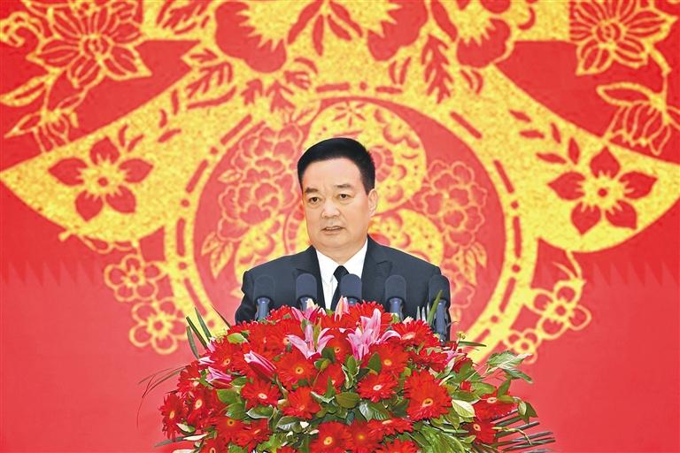 王君正在致辭中說,2024年是西藏經(jīng)濟社會發(fā)展歷程中不平凡的一年。自治區(qū)黨委團結(jié)帶領(lǐng)全區(qū)各族干部群眾,深入貫徹落實習近平總書記關(guān)于西藏工作的重要指示和新時代黨的治藏方略,緊緊圍繞“四件大事”落實,努力推動長治久安和高質(zhì)量發(fā)展取得新成效。牢固樹立總體國家安全觀,堅持警鐘長鳴、警惕常在,把維穩(wěn)工作做在日常、做到經(jīng)常、落實在基層,加快推進依法治藏,建設(shè)更高水平的法治西藏,確保社會大局持續(xù)和諧穩(wěn)定,長治久安的基礎(chǔ)更加牢固。完整準確全面貫徹新發(fā)展理念,落實“三個賦予一個有利于”總要求,傳統(tǒng)產(chǎn)業(yè)提質(zhì)增效,新興產(chǎn)業(yè)加快發(fā)展,營商環(huán)境持續(xù)優(yōu)化,努力推動經(jīng)濟社會高質(zhì)量發(fā)展,確保經(jīng)濟發(fā)展當前有活力、未來有潛力。(下轉(zhuǎn)第二版)(緊接第一版) 堅持以人民為中心的發(fā)展思想,持續(xù)改善各族群眾的生產(chǎn)生活條件,改進工作方式方法,采取針對性措施解決好群眾關(guān)心的醫(yī)療、教育、就業(yè)等實際問題,西藏班招生規(guī)模不斷擴大,全區(qū)城鄉(xiāng)面貌發(fā)生深刻變化,各族群眾的獲得感幸福感安全感持續(xù)增強。持之以恒推進全面從嚴治黨,堅決貫徹黨中央關(guān)于全面從嚴治黨的戰(zhàn)略部署,牢固樹立憑能力用干部、以實績論英雄的鮮明用人導向,努力建設(shè)一支忠誠干凈擔當?shù)母刹筷犖?,黨的戰(zhàn)斗力、凝聚力、領(lǐng)導力、號召力不斷增強。日喀則市定日縣地震發(fā)生后,自治區(qū)黨委認真貫徹落實習近平總書記重要指示精神和中共中央政治局常務(wù)委員會會議精神,按照黨中央、國務(wù)院決策部署,全區(qū)黨政軍警民齊心協(xié)力、協(xié)調(diào)聯(lián)動,廣大黨員干部勇于擔當、沖鋒在前,科學救治受傷群眾,全力搶修基礎(chǔ)設(shè)施,妥善安置受災(zāi)群眾,確保了人民群眾生命財產(chǎn)安全,抗震救災(zāi)工作取得階段性勝利。西藏各項事業(yè)的發(fā)展進步,是以習近平同志為核心的黨中央英明領(lǐng)導的結(jié)果,是習近平新時代中國特色社會主義思想科學指引的結(jié)果,是全區(qū)各族人民努力奮斗的結(jié)果。
