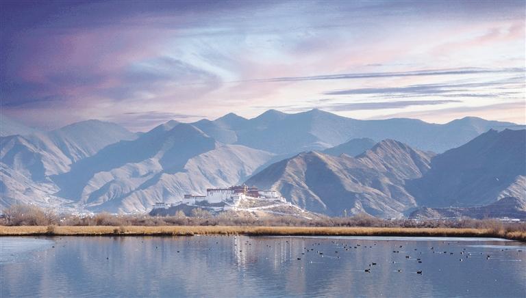 如今,踏入拉魯濕地,近處中干渠水質(zhì)清澈、水量充沛,在蘆葦蕩下靜靜流淌,水面上赤麻鴨悠然嬉戲;遠處布達拉宮巍峨聳立。濕地空氣中彌漫著泥土與植物的芬芳,令人心曠神怡。這里已成為喧鬧市區(qū)中的一片“世外桃源”,是市民和游客游玩打卡的熱門之選。市民張女士表示,每到周末,她都會帶著家人前來散步,這里清新的空氣和優(yōu)美的環(huán)境非常適合老人健身休閑。