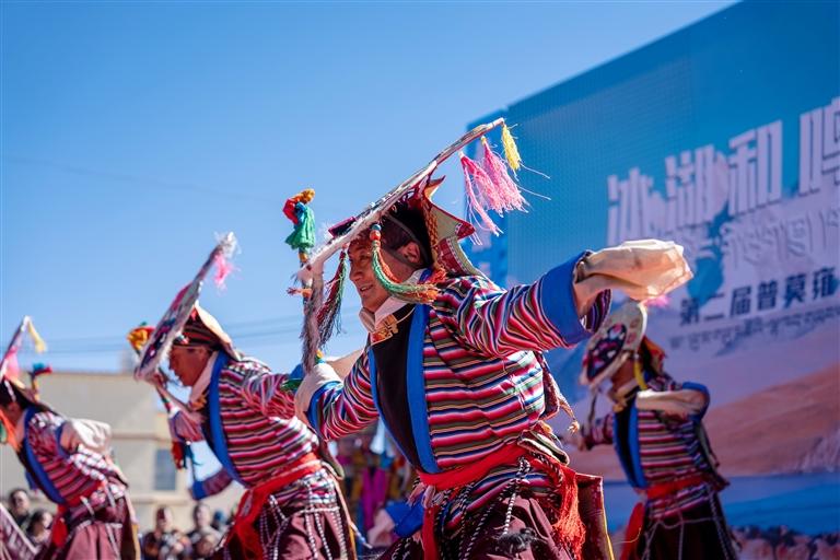 活動(dòng)在浪卡子縣打隆鎮(zhèn)推瓦村舉辦。普莫雍錯(cuò)冬季封凍后,會(huì)形成如夢如幻的幽藍(lán)冰面,因此被贊譽(yù)為“中國貝加爾湖”。每年2月前后,當(dāng)湖面完全冰封,推瓦村村民便會(huì)集結(jié)羊群,趕著它們踏上冰面,前往湖心島過冬,這一延續(xù)千年的冰上趕羊傳統(tǒng),承載著深厚的歷史文化底蘊(yùn)。