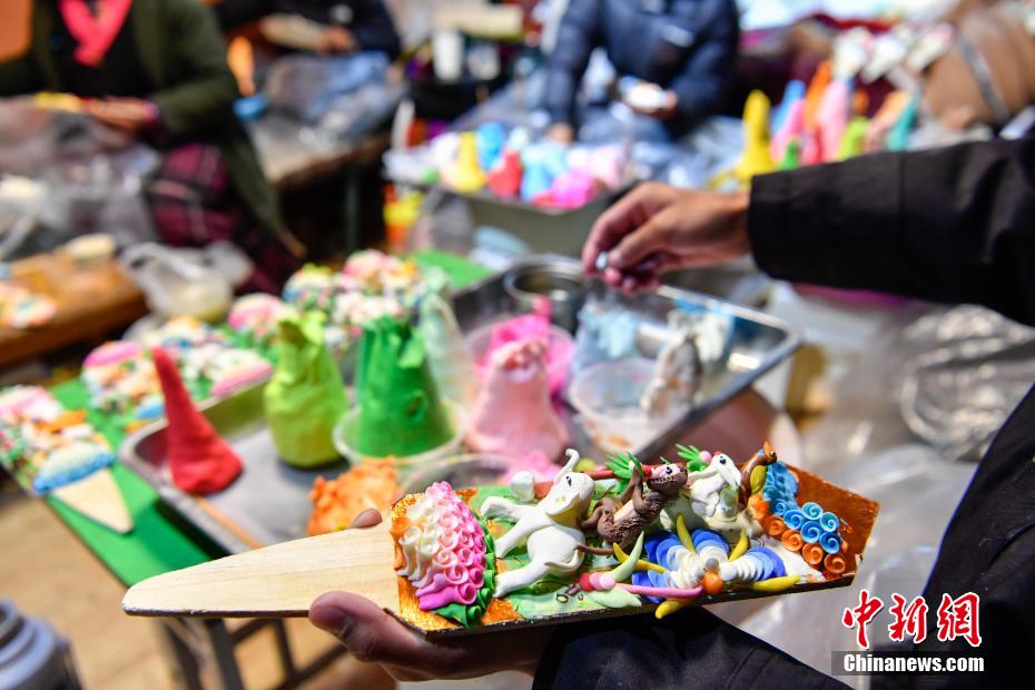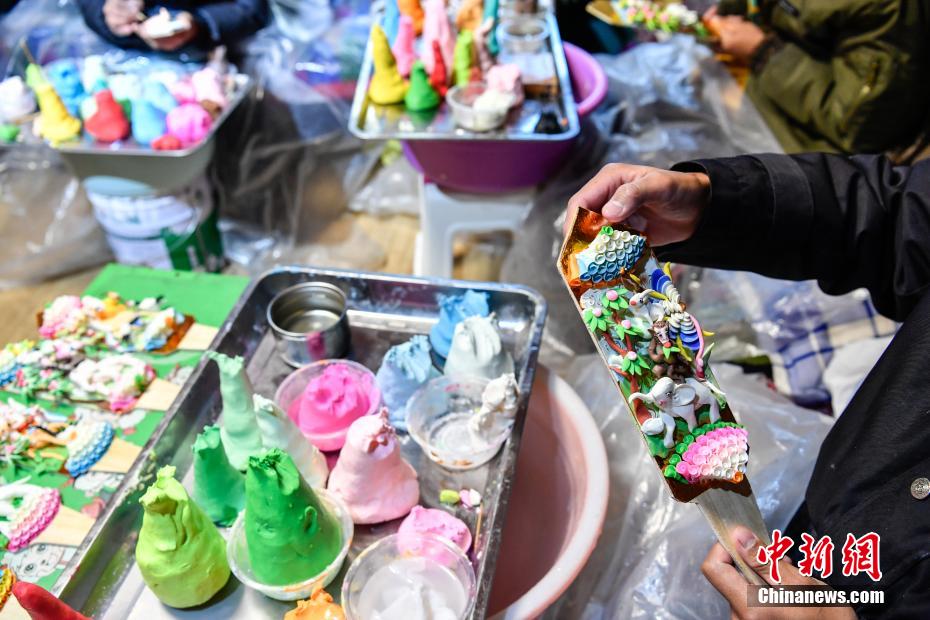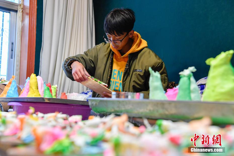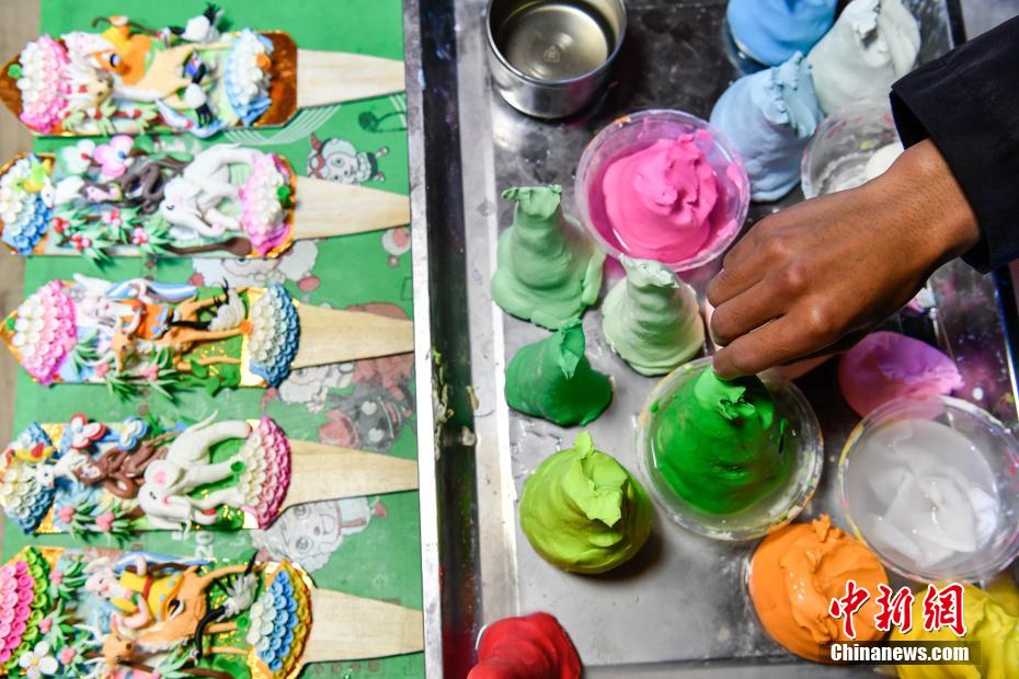 2月15日,手工藝人在拉薩制作酥油花。隨著藏歷新年臨近,酥油花在拉薩年貨市場(chǎng)上熱銷。酥油花在藏語(yǔ)中稱為“孜扎”,是藏族民眾家庭中必備的年貨之一。