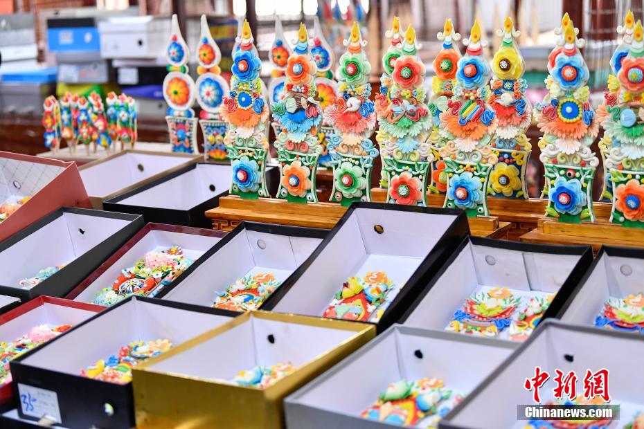 2月15日,手工藝人制作好的酥油花在拉薩八廓商場(chǎng)出售。隨著藏歷新年臨近,酥油花在拉薩年貨市場(chǎng)上熱銷。酥油花在藏語(yǔ)中稱為“孜扎”,是藏族民眾家庭中必備的年貨之一。