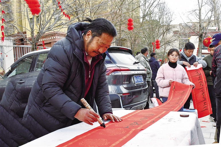 書(shū)法家給市民寫(xiě)祝福語(yǔ)。記者 桑旦歐珠 攝