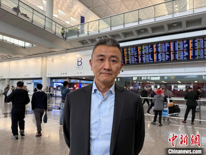 2月19日,西藏航空“拉薩-成都天府-香港”航線開通。圖為西藏航空副總經(jīng)理張兵兵在香港國際機(jī)場抵港大堂接受中新社記者采訪。中新社記者 韓星童 攝