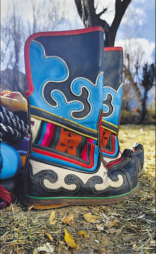 堆龍德慶區(qū)覺(jué)木隆派藏戲演員表演時(shí)穿的藏靴。(圖片均由拉薩市文化和旅游局提供)