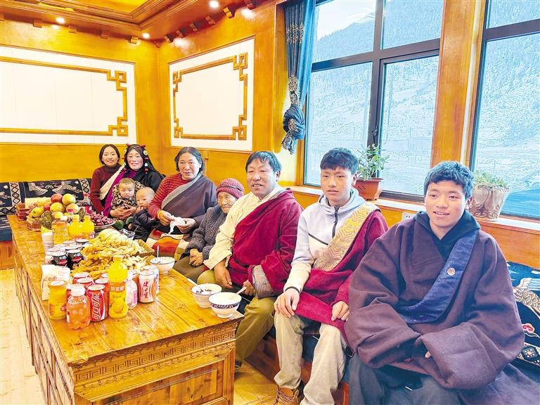 60歲的多吉大爺放牧歸來(lái),推開(kāi)家門(mén),“古突”的香氣瞬間將疲憊驅(qū)散?!岸嫉烬R啦,吃‘古突’嘍!”大兒子格桑多吉一邊招呼,一邊給家人盛上“古突”。房間里,歡聲笑語(yǔ)不斷,處處充滿溫情。