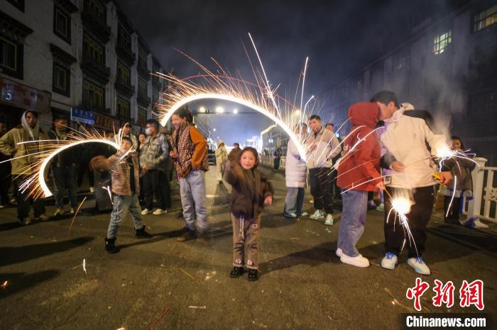 藏歷新年是西藏傳統(tǒng)民俗活動(dòng),也是中國國家級(jí)非物質(zhì)文化遺產(chǎn)。2月27日,西藏迎來一年一度的藏歷新年古突夜(類似春節(jié)的除夕),如今過古突夜,西藏民眾在點(diǎn)燃火把的同時(shí),也會(huì)燃放煙花,古城拉薩煙花璀璨。圖為2月27日晚,孩子們?cè)诶_街頭燃放煙花,慶祝藏歷新年的到來。中新社記者 江飛波 攝