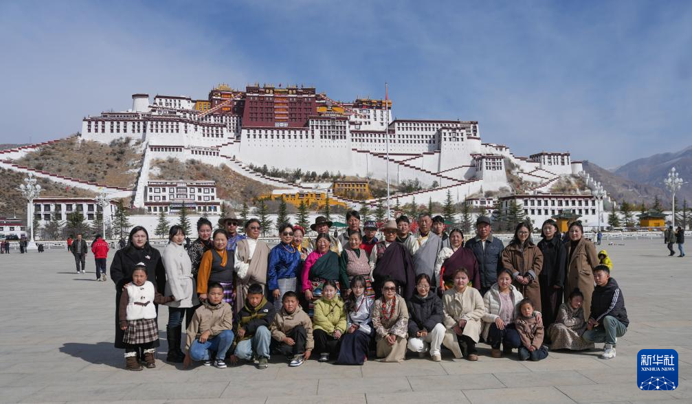 2月28日,來(lái)自西藏那曲市比如縣的一家人在拉薩布達(dá)拉宮前合影留念。