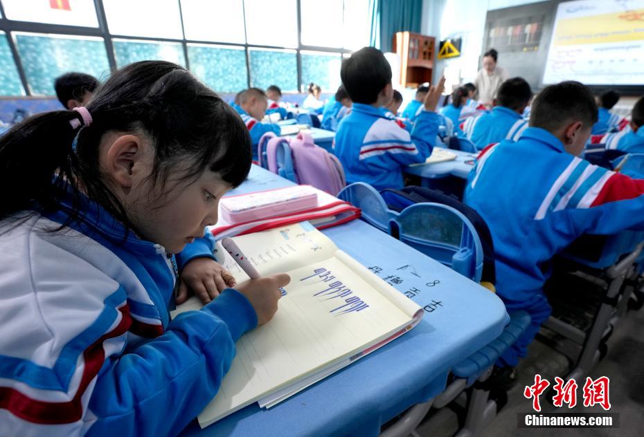 3月10日,拉薩市第一小學(xué)一年級(jí)八班學(xué)生們正在上藏語文課。當(dāng)日,西藏拉薩市春季學(xué)期開學(xué),各項(xiàng)教學(xué)工作有序開展。中新社記者 李林 攝
