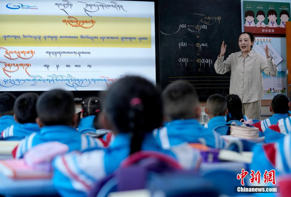 3月10日,拉薩市第一小學(xué)藏語文老師桑旦旺姆在課堂上講課。當(dāng)日,西藏拉薩市春季學(xué)期開學(xué),各項(xiàng)教學(xué)工作有序開展。中新社記者 李林 攝