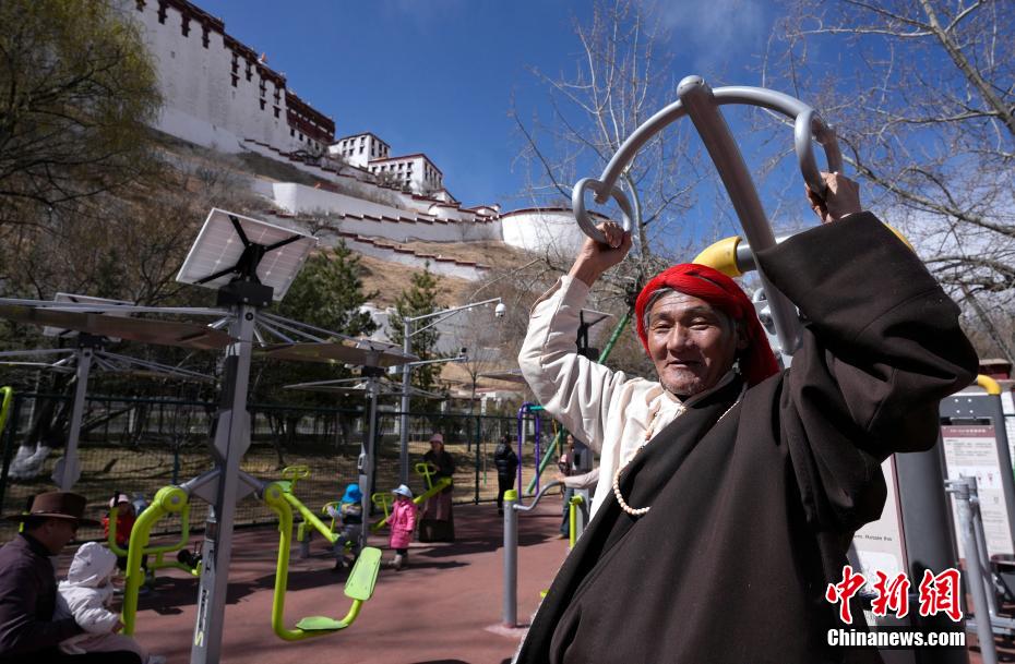 3月13日,民眾在西藏拉薩宗角祿康公園健身。坐落于布達(dá)拉宮腳下的宗角祿康公園是拉薩民眾戶外活動的一大場所。隨著3月春回拉薩,大家來到公園散步、健身,一片春意盎然的景象。中新社記者 李林 攝