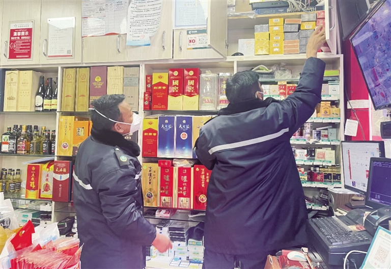 執(zhí)法人員在煙草專(zhuān)賣(mài)店檢查。(資料圖)