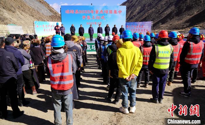 圖為西藏山南市瓊結(jié)縣2025年重點(diǎn)項(xiàng)目集中開復(fù)工儀式現(xiàn)場。曲杰 攝