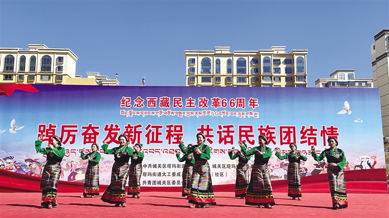 為隆重紀(jì)念西藏民主改革66周年,進(jìn)一步豐富居民群眾的精神文化生活,助力提升基層治理,3月26日,由中共拉薩市城關(guān)區(qū)塔瑪街道工作委員會、拉薩市城關(guān)區(qū)塔瑪街道辦事處主辦的紀(jì)念西藏民主改革66周年系列活動在同心公園舉辦。據(jù)了解,此次活動以“踔厲奮發(fā)新時代 共話民族團(tuán)結(jié)情”為主題,涵蓋文藝匯演和宣傳集市等,吸引了周邊眾多市民群眾參與。