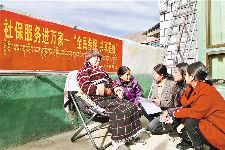 山南市瓊結(jié)縣人力資源和社會保障局工作人員入戶辦理養(yǎng)老保險待遇資格認證。