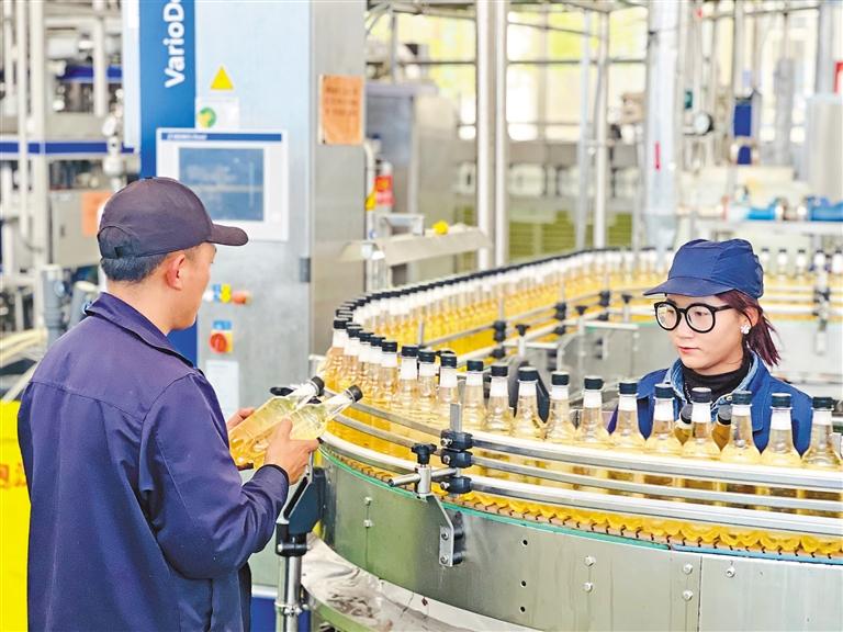 西藏娃哈哈食品有限公司員工在調(diào)試灌裝機。