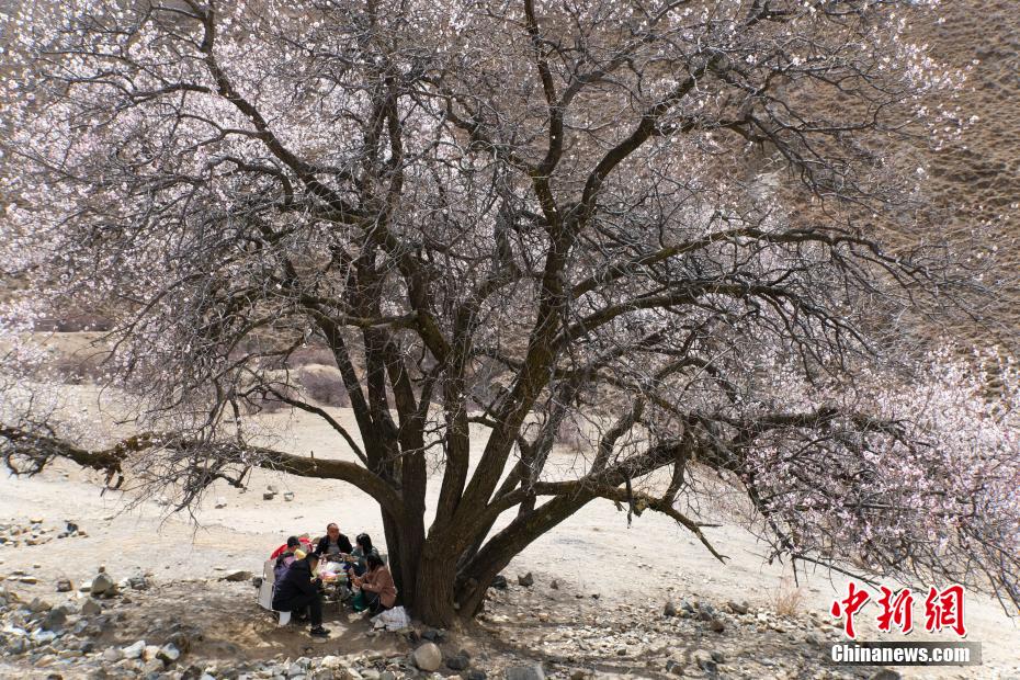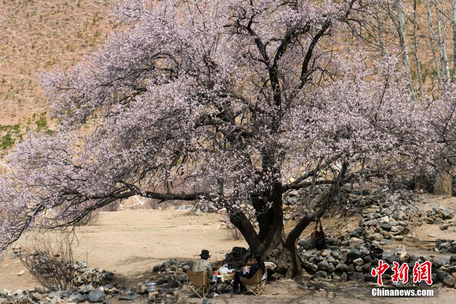 3月下旬,高原已是一片春意。西藏拉薩市區(qū)拉薩河南岸慈覺林的古桃樹進(jìn)入盛花期,3月30日恰逢周末,不少市民游客前往賞花“打卡”,在桃樹下野餐等,享受高原春日風(fēng)光。圖為3月30日,民眾在拉薩慈覺林桃樹下野餐,享受悠閑時光。江飛波 攝