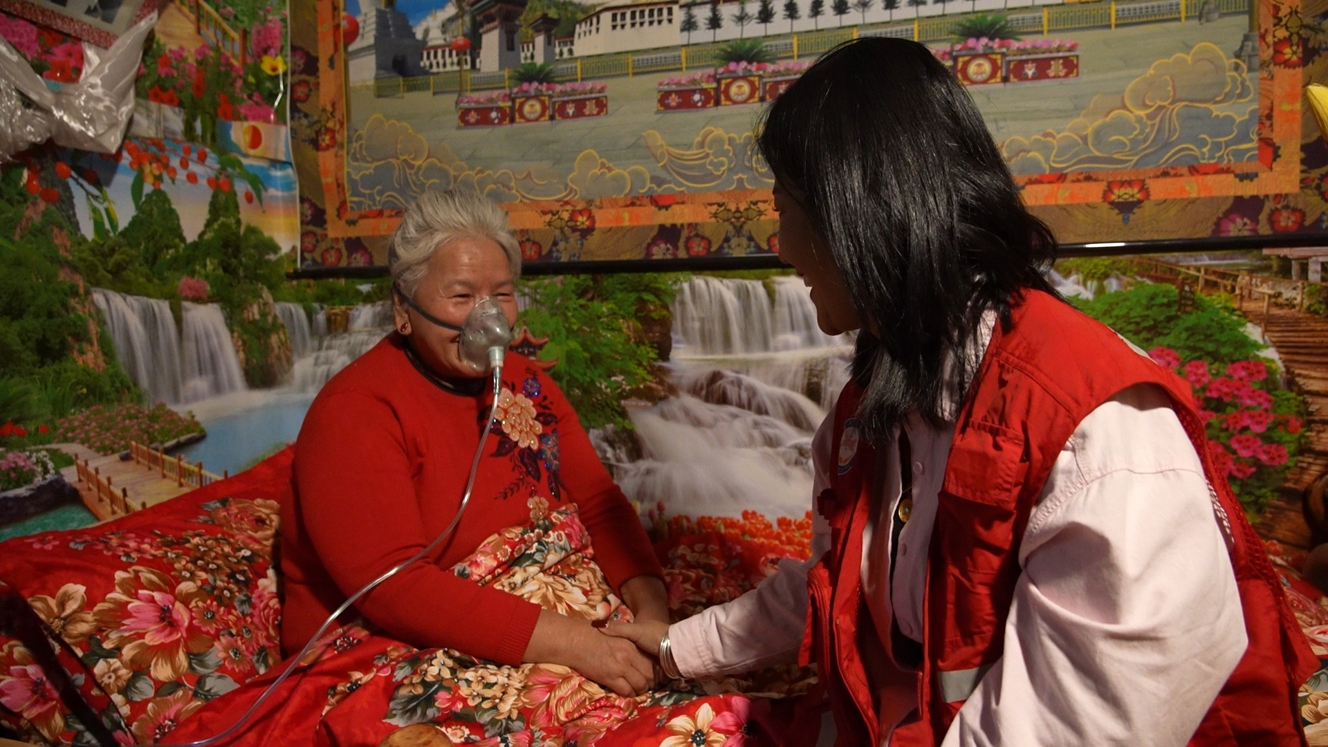 如今,像尼瑪這樣的特殊困難老人,只要輕按床頭按鈕,15分鐘內(nèi)就能叫來社區(qū)工作人員。